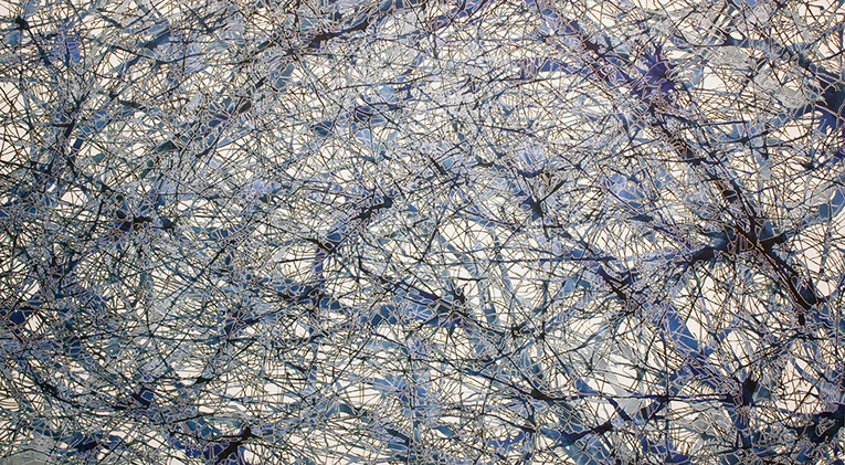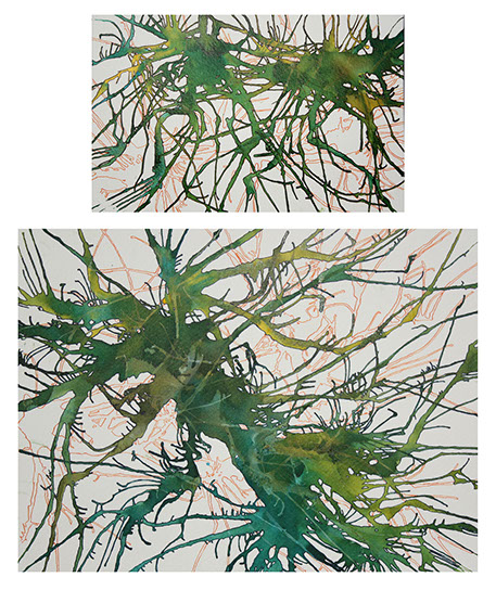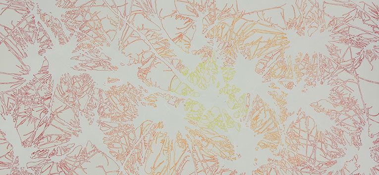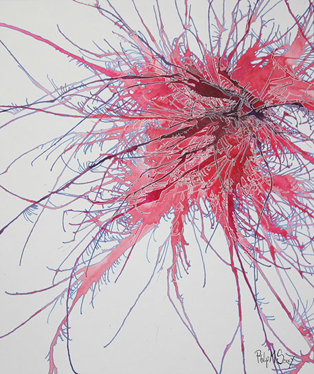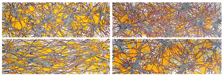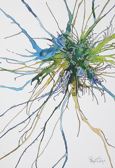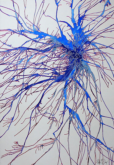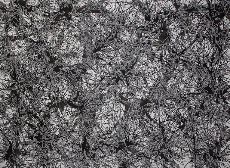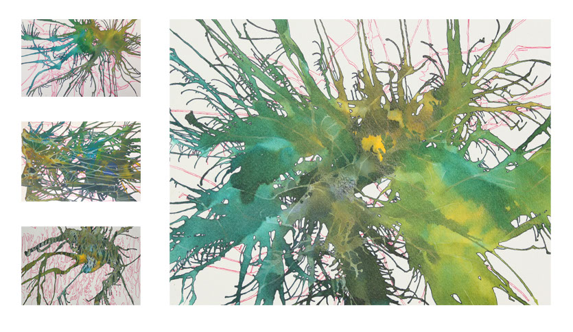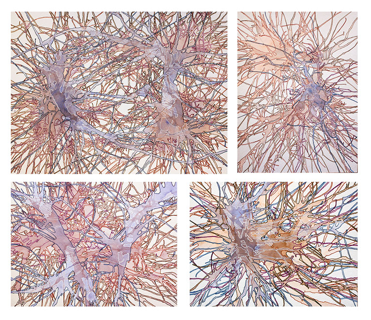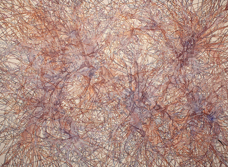 If the work is the documentation of a moment--a thought being formed--it is therefore also a record of neurons and synapses firing in the brain, and (perhaps not surprisingly) the form that naturally arises is reminiscent of the patterns found in a brain scan.